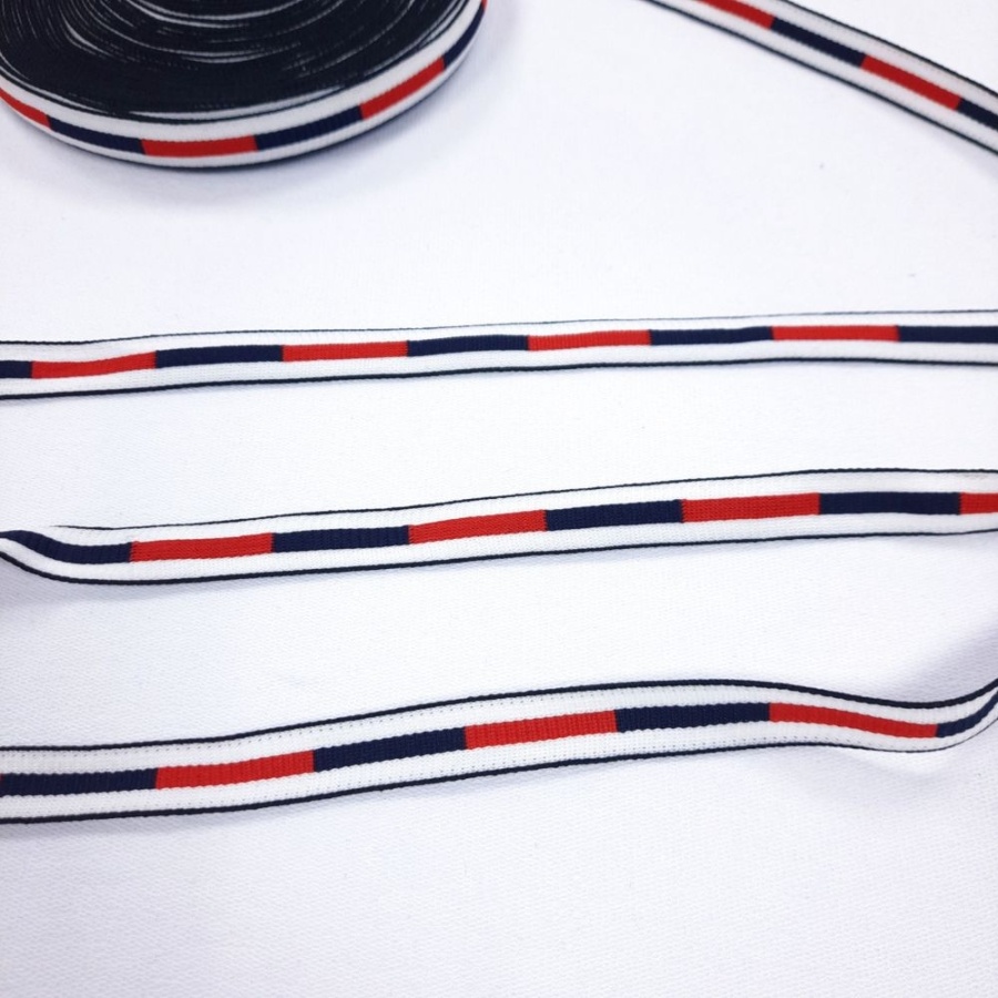 Лента отделочная ш. 15 мм. Красно-чёрная полоска на белом