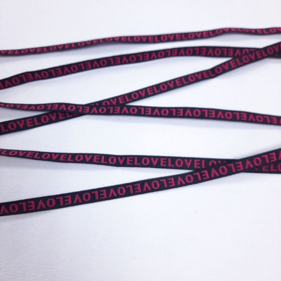 Лента репсовая ш. 10 мм. Love фуксия на чёрном