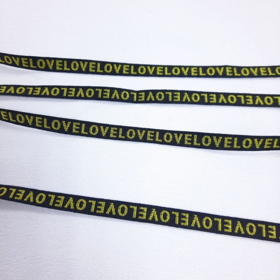 Лента репсовая ш. 10 мм. Love жёлтый на чёрном