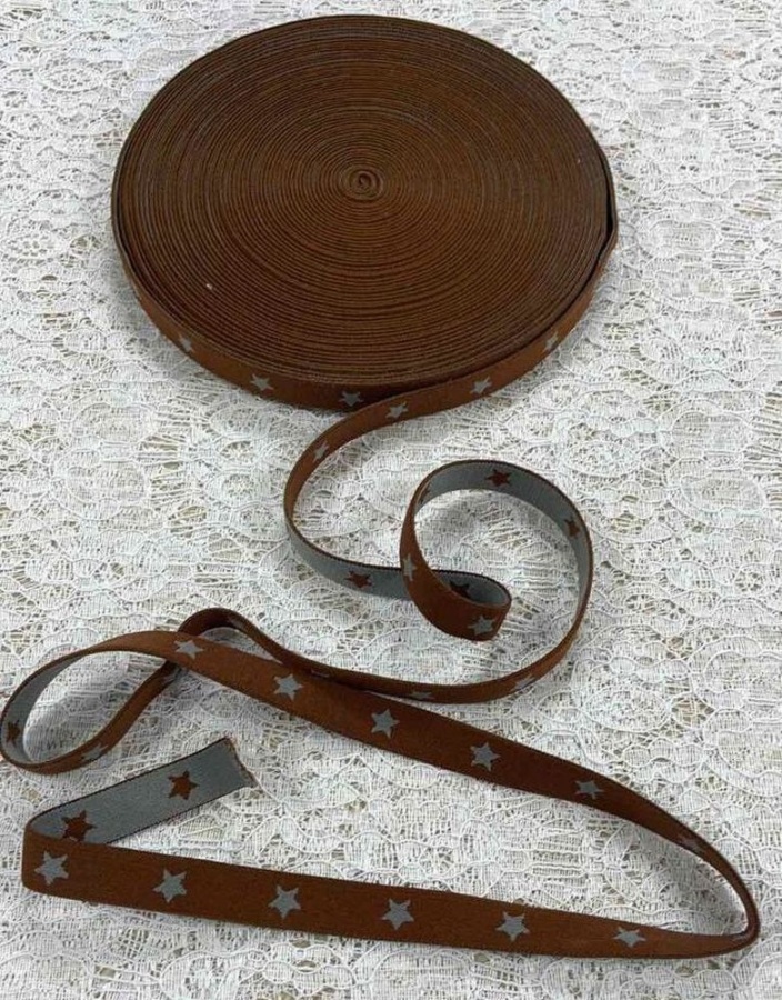 Резинка Декоративная ш. 15 мм. двусторонняя Звёзды коричневые и серые