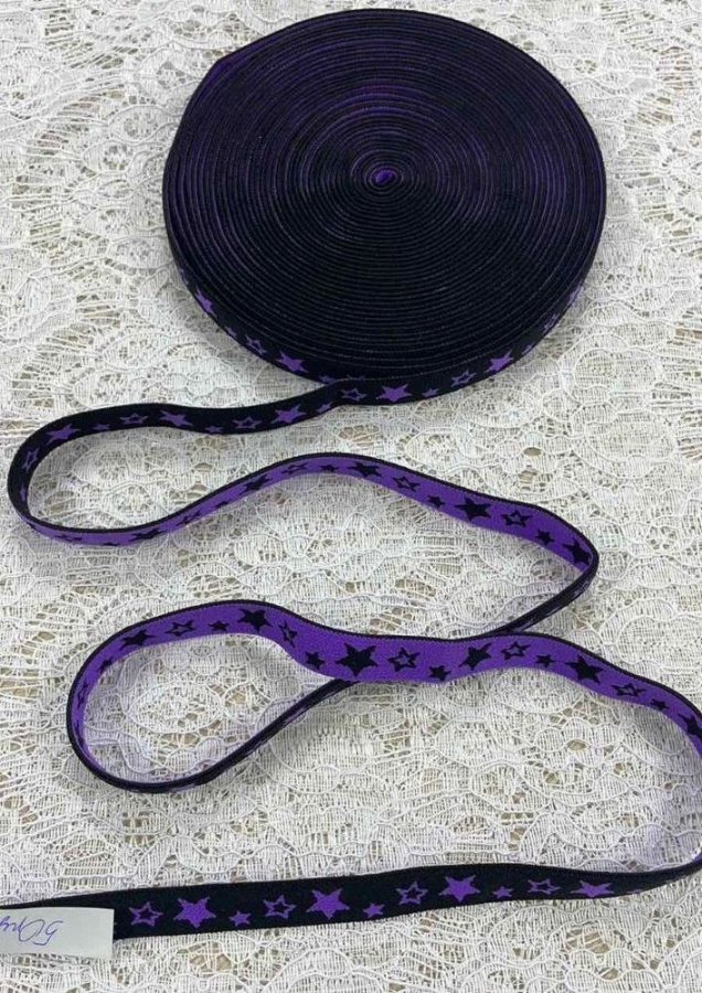 Резинка Декоративная ш. 15 мм. Фиолетовые звёзды на чёрном