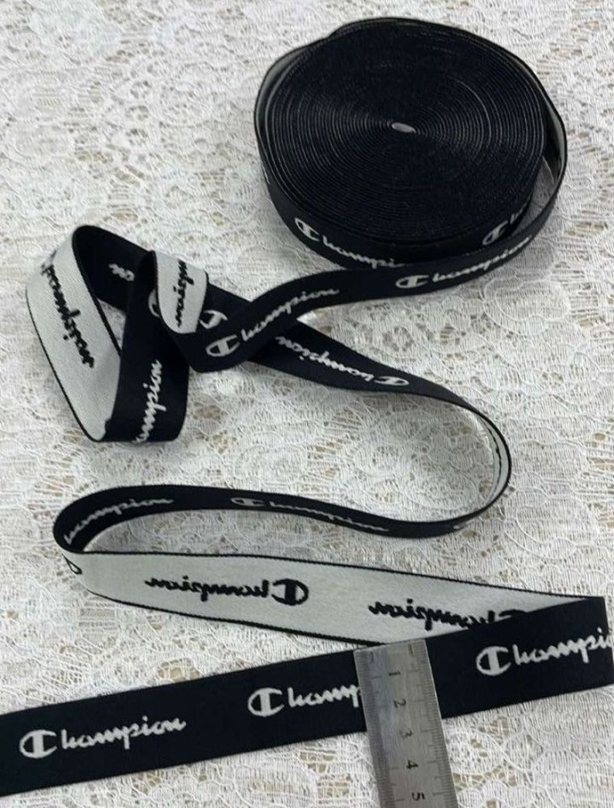 Резинка Декоративная ш. 28 мм. Белый Champion на чёрном