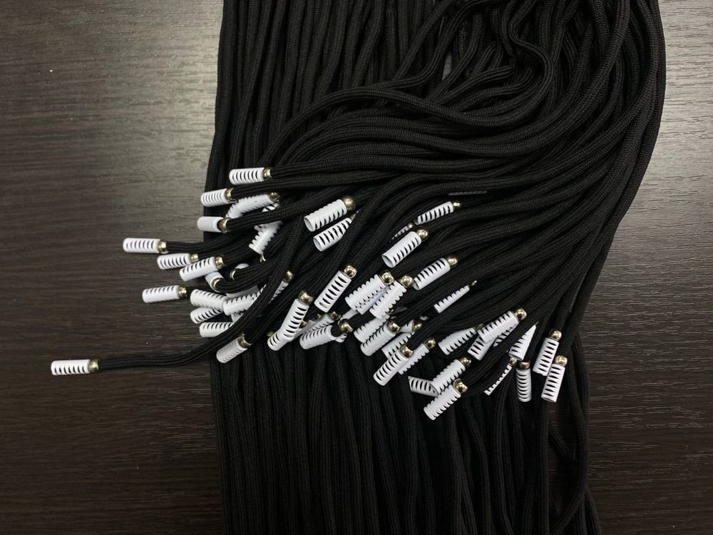 Шнурки круглые 120 см., д. 4 мм., металлический белый наконечник, чёрные