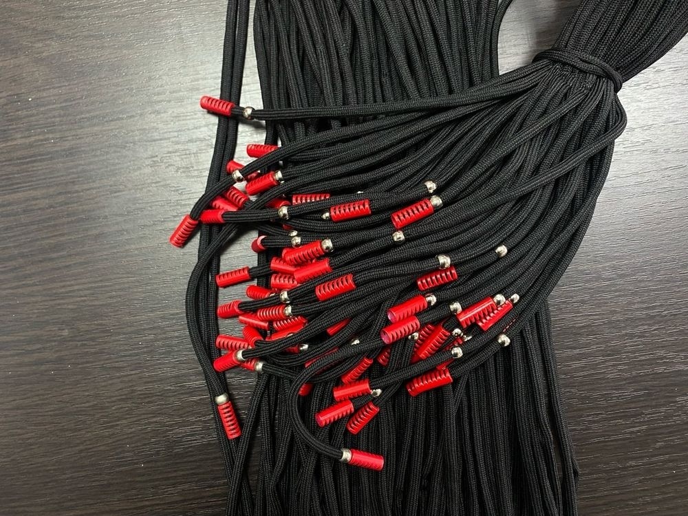 Шнурки круглые 120 см., д. 4 мм., металлический красный наконечник, чёрные
