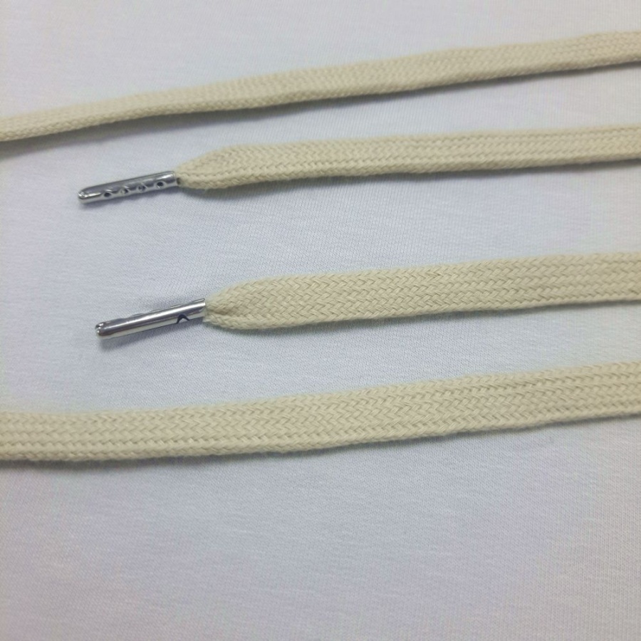 Шнурки плоские 125 см., ш. 10 мм., металлический наконечник, бежево-серые