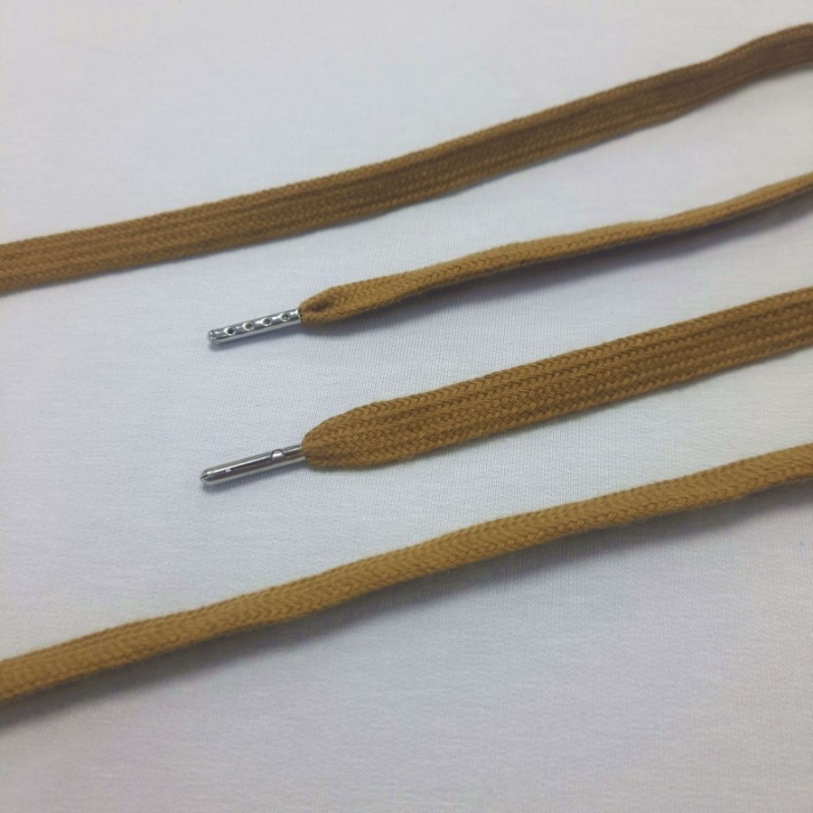 Шнурки плоские 125 см., ш. 10 мм., металлический наконечник, коричневые