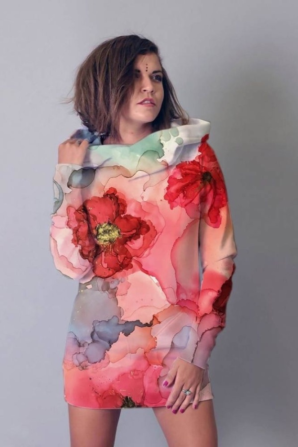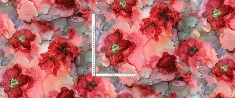 Трикотаж Футер 2-нитка Петля Маки акварель