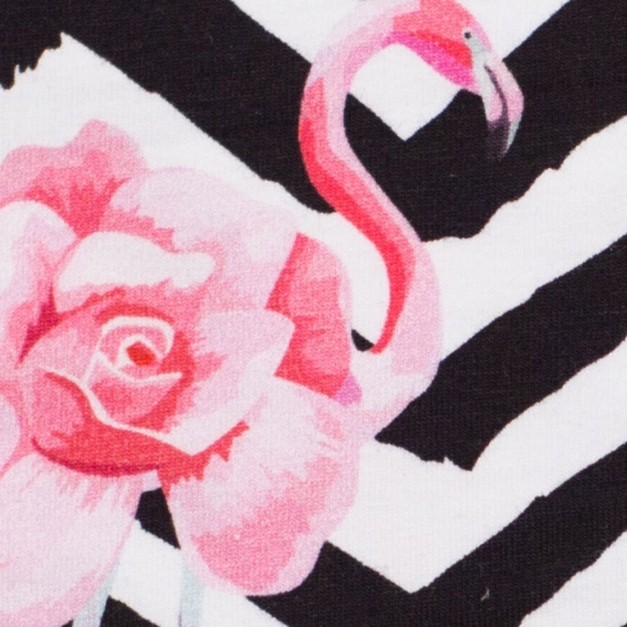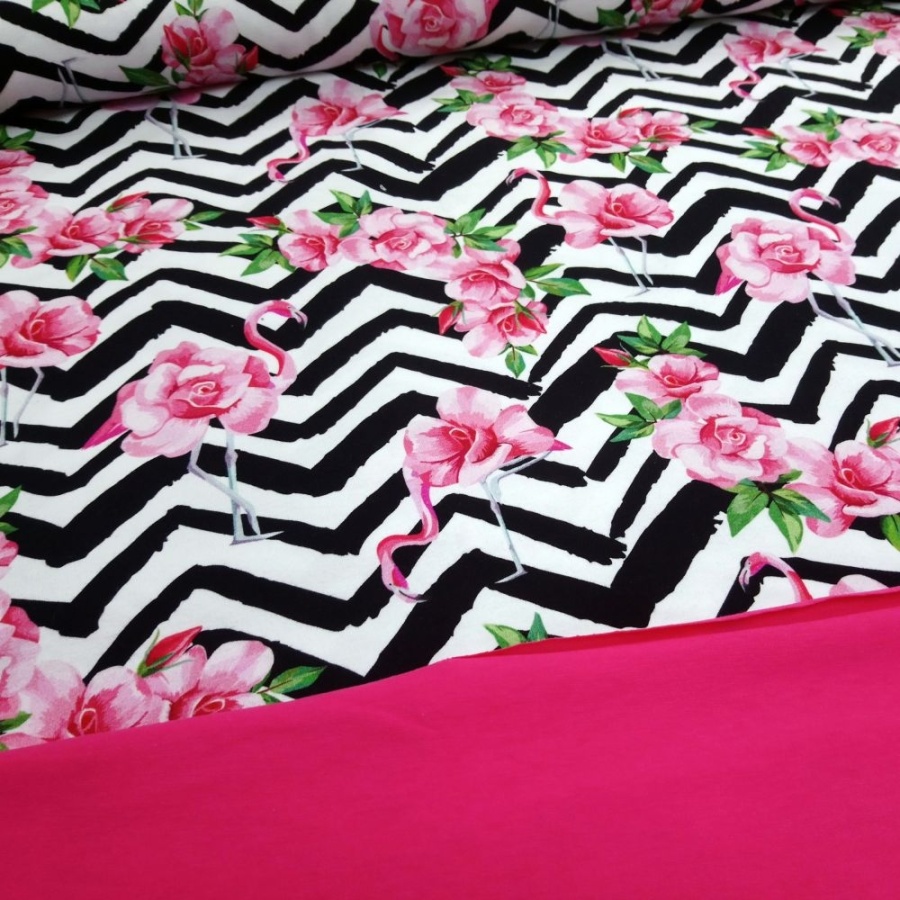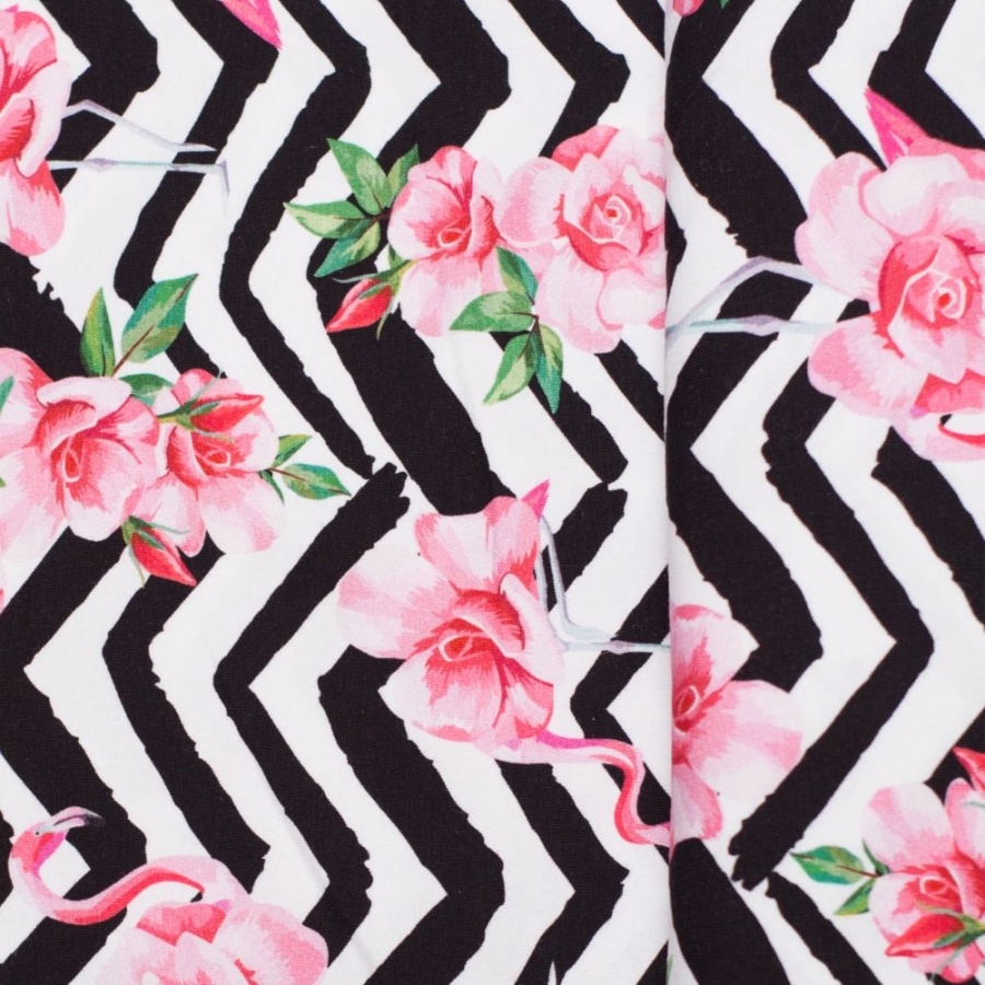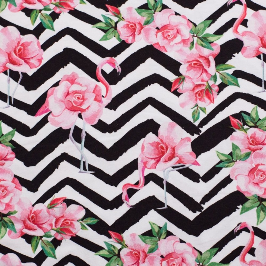 Трикотаж Кулирка Фламинго на зигзагах